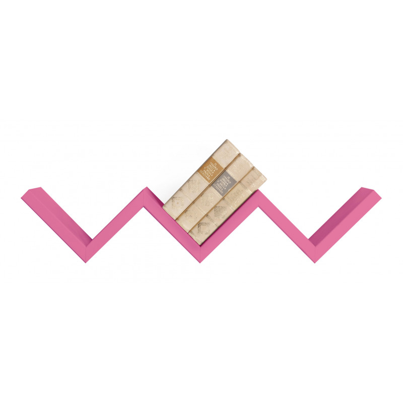 La mensola da parete Saetta Fuxia di Sanitec è una soluzione decorativa dal profilo a zig-zag, ideale per cameretta, studio e living, Made in Italy.
