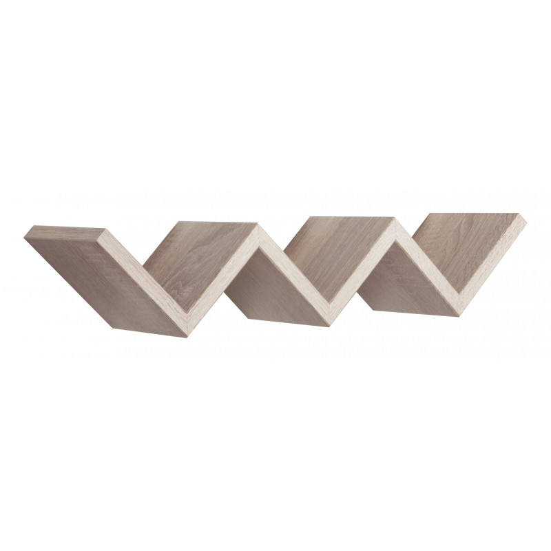 La mensola da parete Saetta Rovere Sagerau di Sanitec è una soluzione decorativa dal profilo a zig-zag, ideale per cameretta, studio e living, Made in Italy.