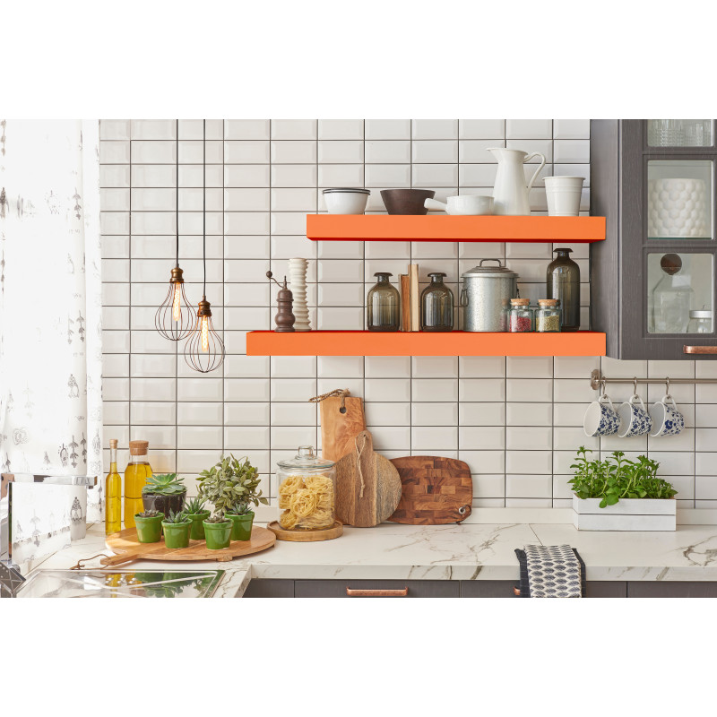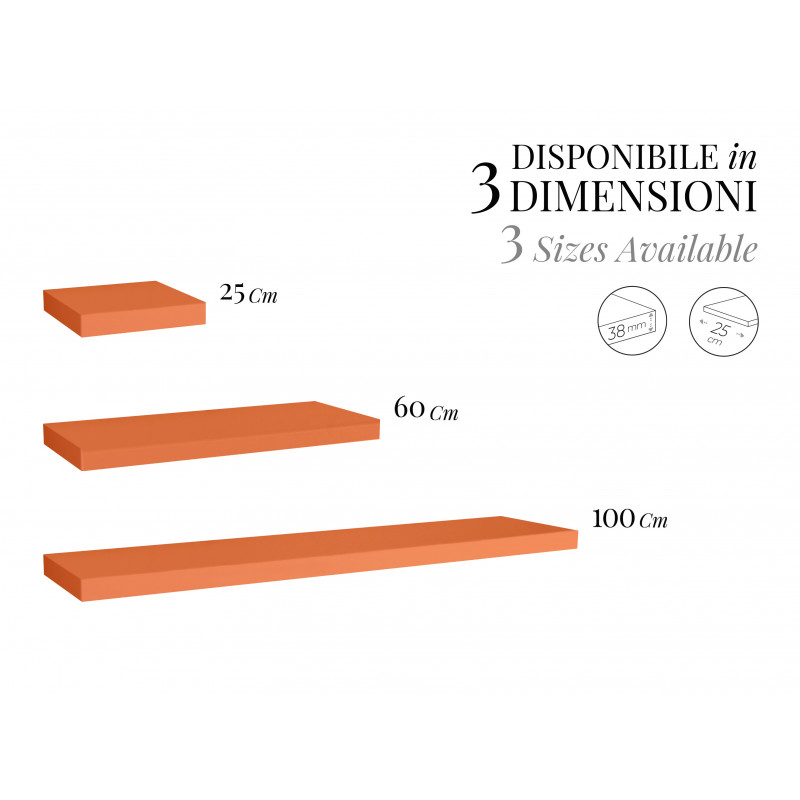 La mensola da parete Minerva Arancione 25×25 cm è una mensola tamburata dal bordo importante (spessore 3,8 cm) che arreda e aggiunge un appoggio stabile in qualunque stanza.