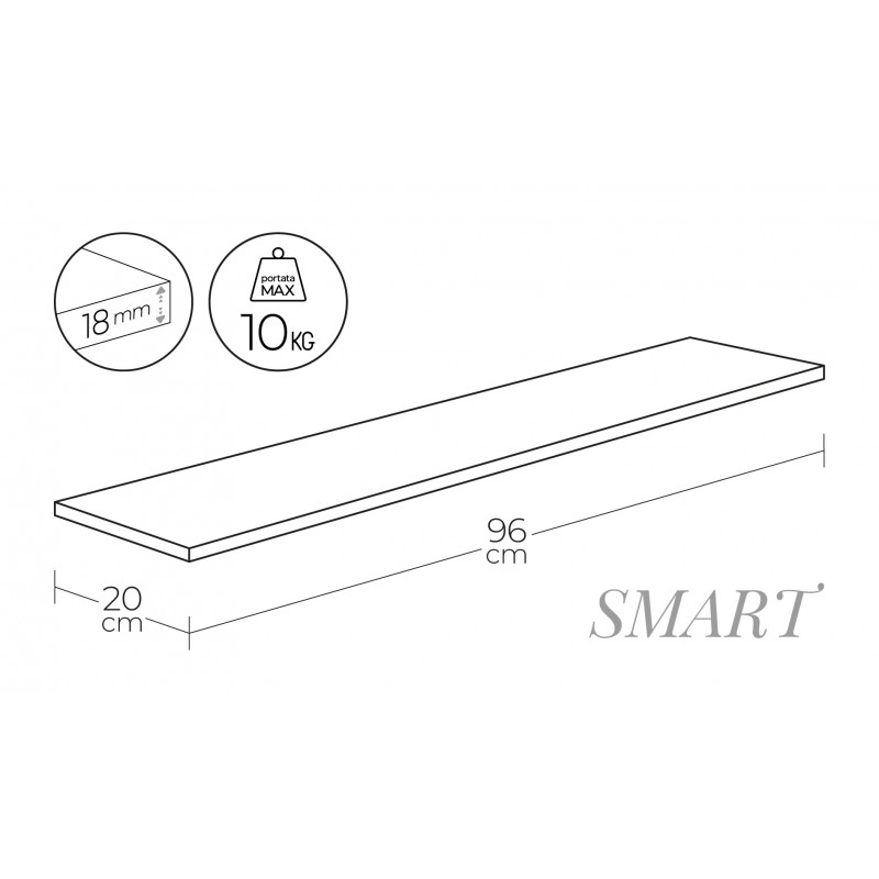 Il formato da 96×20 cm è la misura “giusta” per libri tascabili, cornici, speaker compatti o una pianta, senza appesantire la parete.