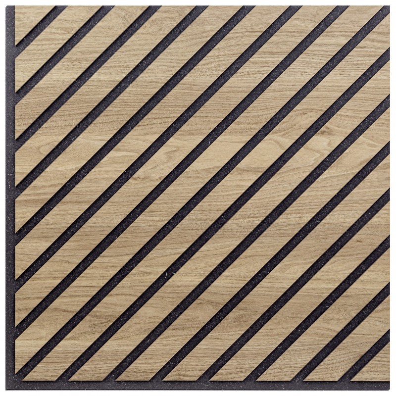 Pannello Singolo, Decorativo Murale Fonoassorbente a Listelli Obliqui in Legno, Rovere Aurora, 55x55 p1,1 cm - Hoogapanel