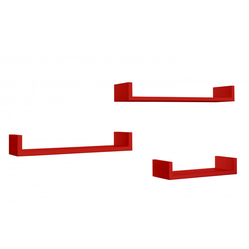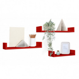 Set di 3 Mensole da Muro, Mensole Muro Design, Mensola da Parete, Rosso, 60x8 p15,5 cm, 50x8 p15,5 cm e 40x8 p15,5 cm - Calamita