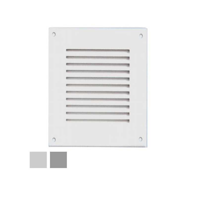 Lamiera verniciata bianca/grigia - Con rete <br />Da sovrapporre <br />Spessore mm 5 <br />Passaggio aria cmq 85