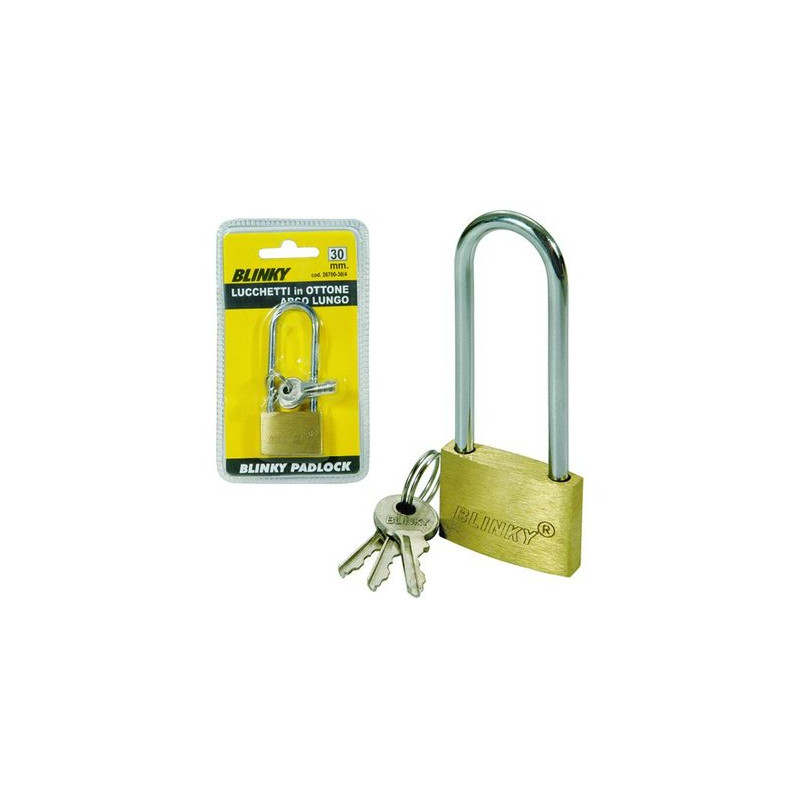 BLINKY 26700 ARCO LUNGO<br />Arco in acciaio temperato<br />Catenacci a doppia chiusura<br />Controperni antigrimaldello<br />Molle inox<br />Misura 30mm.