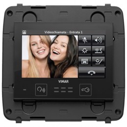 Video touch screen a colori 4,3 in Full Flat per posto interno videocitofonico Due Fili per controllo e comando domotica, 1 ingresso per sensore di temperatura, completo di supporto per installazione in scatole 8 moduli, grigio