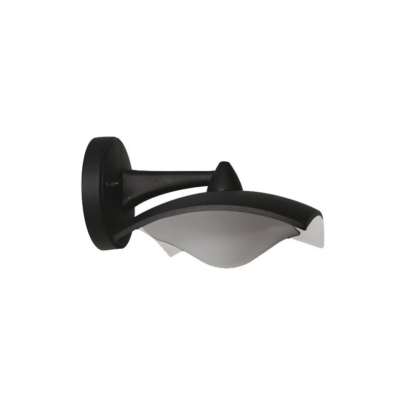 Lanterna Dioniso LED Braccio Superiore Lanterna da parete per esterni in polipropilene nero con schermo in policarbonato trasparente.