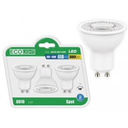 Le lampadine LED GU10 6 W di Ecolight emettono 470 lumen a 4000 K con fascio 120°.