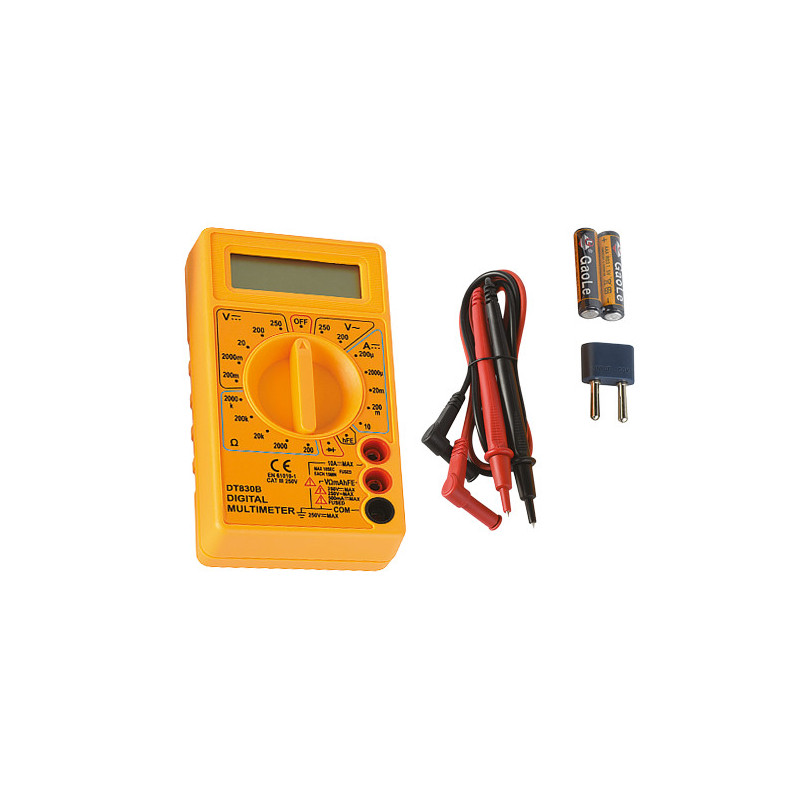 Tester digitale tascabile per misure di tensione, corrente e resistenza.