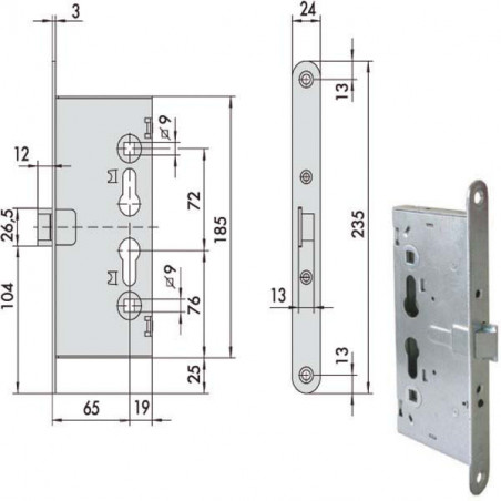 Frontale mm 24x235 - Entrata mm 65