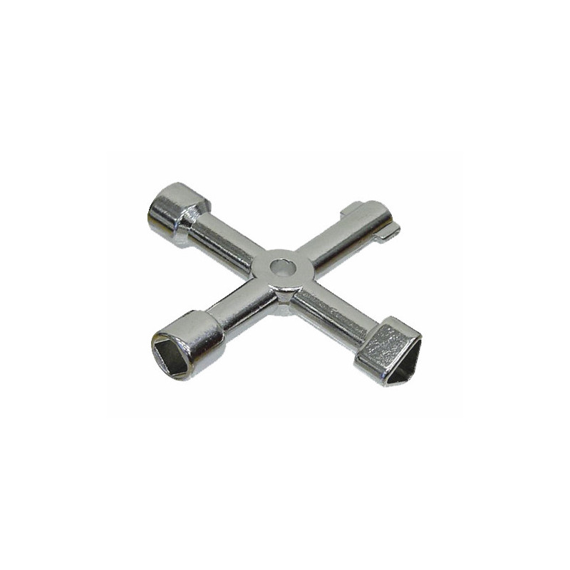 La chiave universale multiuso a croce 4 profili è uno strumento versatile progettato per aprire e chiudere cassette dell'acqua, luce e gas.