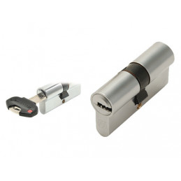 Cilindro europeo 35-50 mm con chiave reversibile e 10 spine Cilindro di sicurezza a profilo europeo, dotato di chiave piatta reversibile in ottone nichelato e 10 spine.