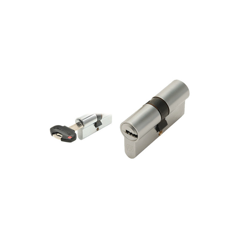 Cilindro europeo 40-60 mm con chiave reversibile e 10 spine Cilindro di sicurezza a profilo europeo, dotato di chiave piatta reversibile in ottone nichelato e 10 spine.