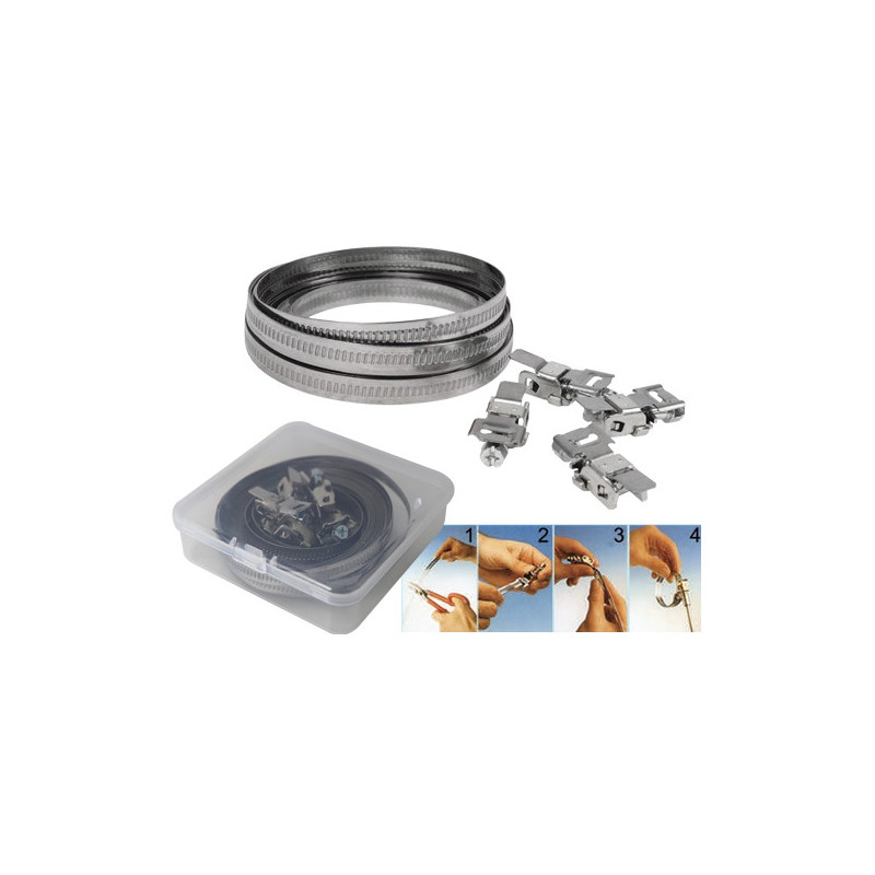 Bordi arrotondati e 8 ganci inclusi per serraggio su tubi e canali.
