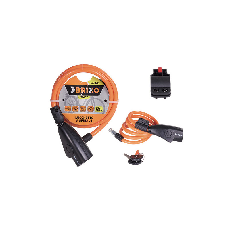 Cavo lucchetto spirale Brixo Twist 8 × 1000 mm in acciaio intrecciato flessibile.