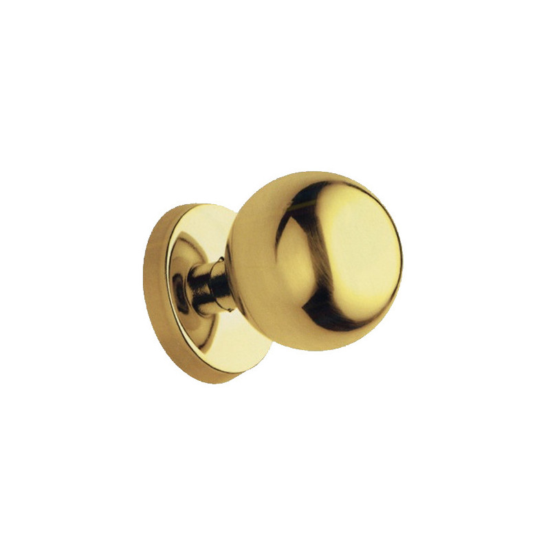 Pomolo sferico per portoncino modello A.740 in ottone lucido, diametro 70 mm, completo di rosetta da 60 mm.