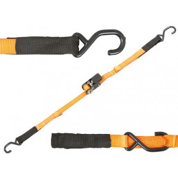 Fascia serraggio con cricchetto 5 m in poliestere alta tenacità e ganci aerei.