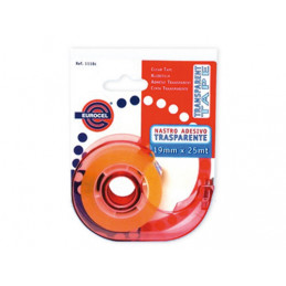 Nastro trasparente adesivo da ufficio in dispenser, larghezza 19 mm e lunghezza 25 m.