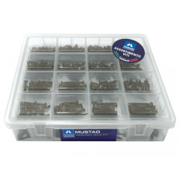 Valigetta viti Mustad Box Panel-Vit 670 pz in plastica trasparente robusta e antigraffio.