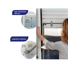Cassonetto in alluminio compatibile con guide 14–20 mm, estensione massima 160 cm.