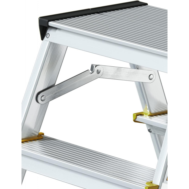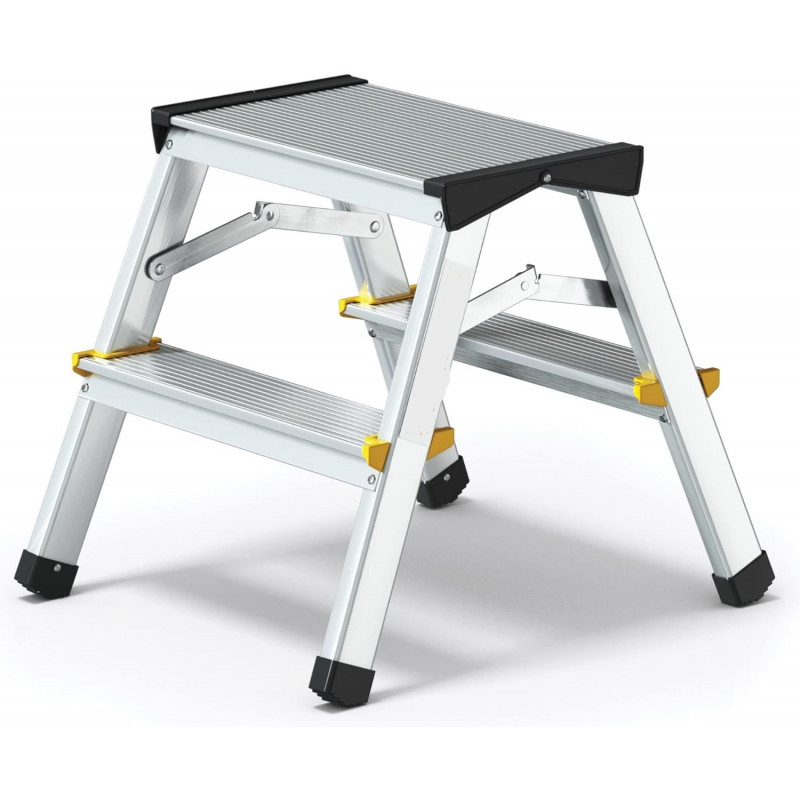 Scala sgabello bifacciale 2x2 in alluminio, leggera e compatta, ideale per l’uso domestico.