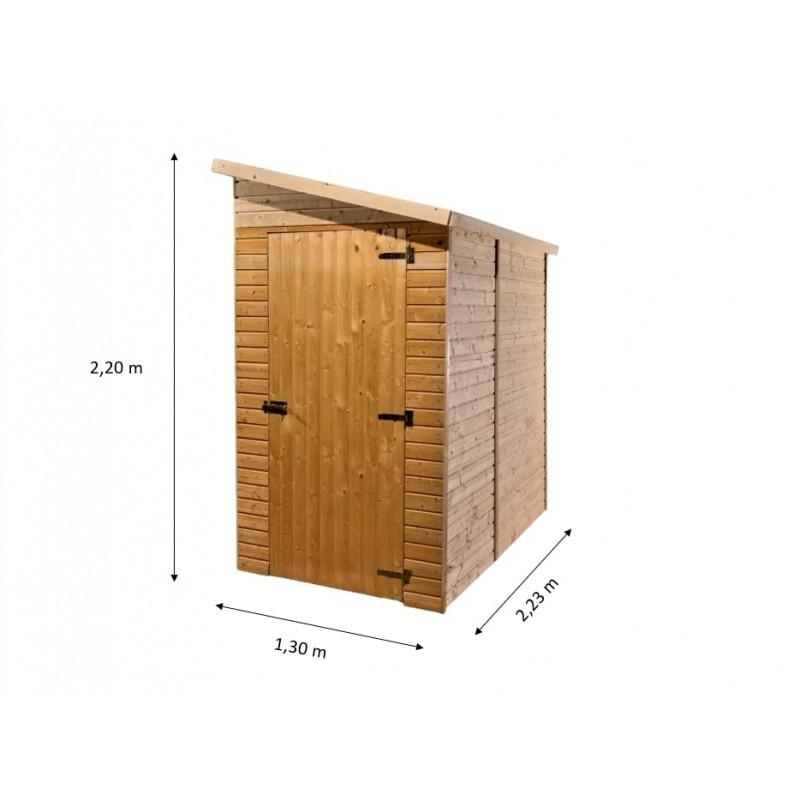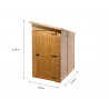 Materiale: Abete massello non trattato, essiccato 15–18%Certificazione: PEFCPareti: Assi da 28 mm su montanti 70x45 mmColore: Legno naturaleDimensioni a terra: 280 x 584 cm = 16,35 m²Dimensioni interne: 274 x 578 cm = 15,87 m²Superficie tetto: 304 x 610 cm = 18,54 m²Altezza totale: 2,29 mPorta: Doppia battente con serratura, 240 x 187 cmTetto: Piano, in...