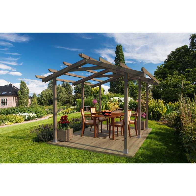 Codice articolo: 08133/0Modello: Calice PocketMateriale: Legno di abeteTrattamento: Impregnato in autoclave + verniciatoColore: NoceCostruzione: In kit di montaggioDimensione esterna in pianta: 292x292 cmDimensione copertura: 300x300 cmSuperficie: 9 m²Altezza minima: 210 cmAltezza massima: 270 cmCopertura: Telo in PVC bianco – 540 gr/m² – non ignifugo –...