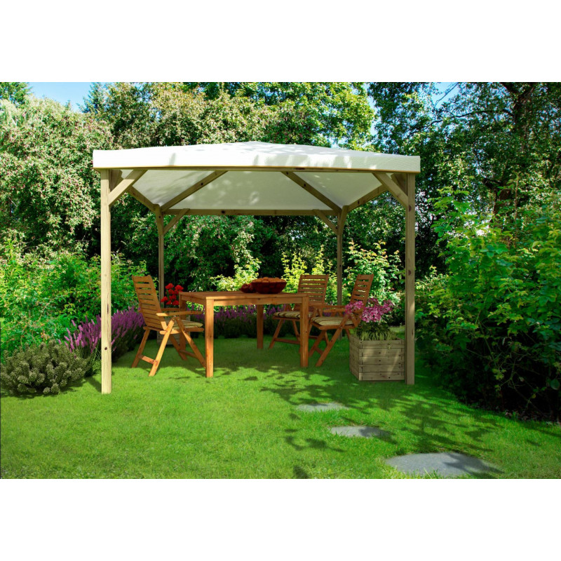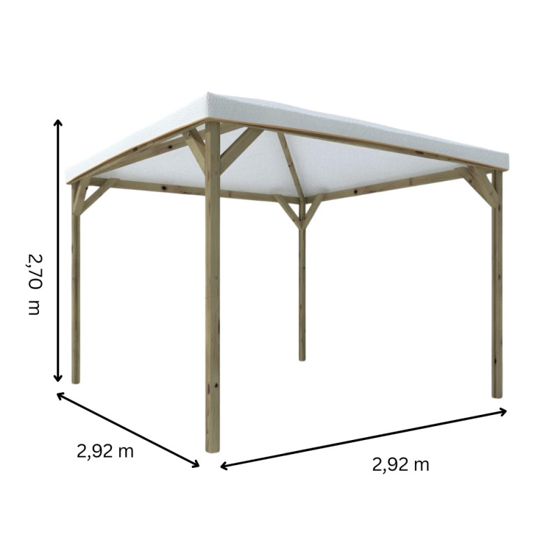 Codice articolo: 08133/0Modello: Calice PocketMateriale: Legno di abeteTrattamento: Impregnato in autoclave + verniciatoColore: NoceCostruzione: In kit di montaggioDimensione esterna in pianta: 292x292 cmDimensione copertura: 300x300 cmSuperficie: 9 m²Altezza minima: 210 cmAltezza massima: 270 cmCopertura: Telo in PVC bianco – 540 gr/m² – non ignifugo –...