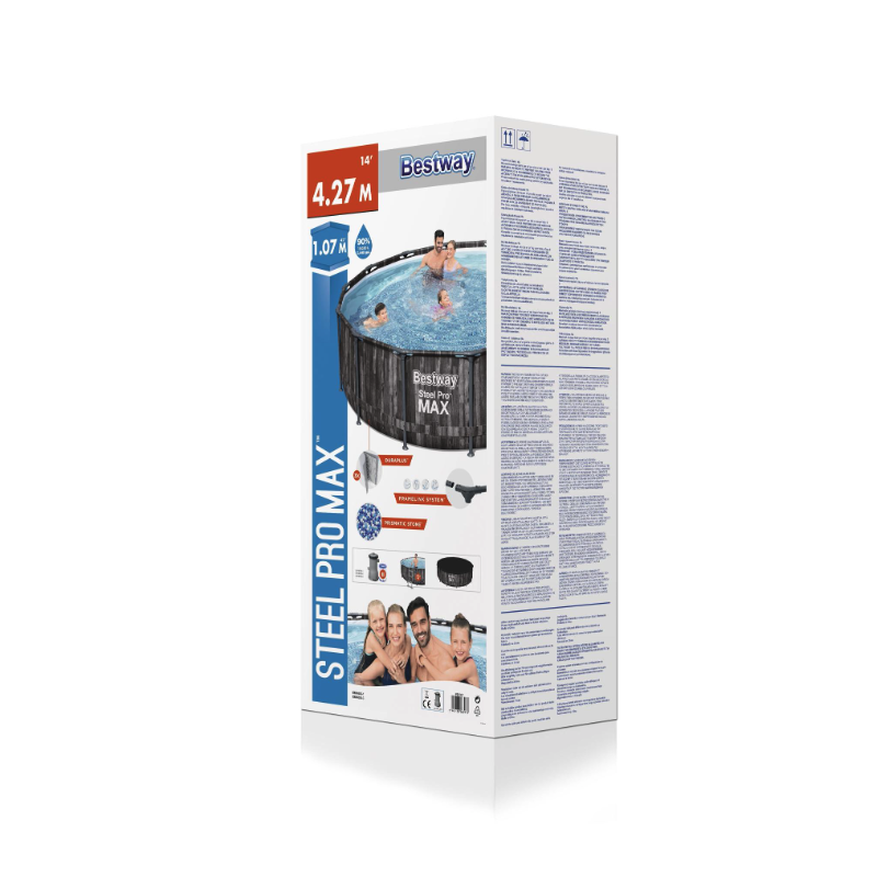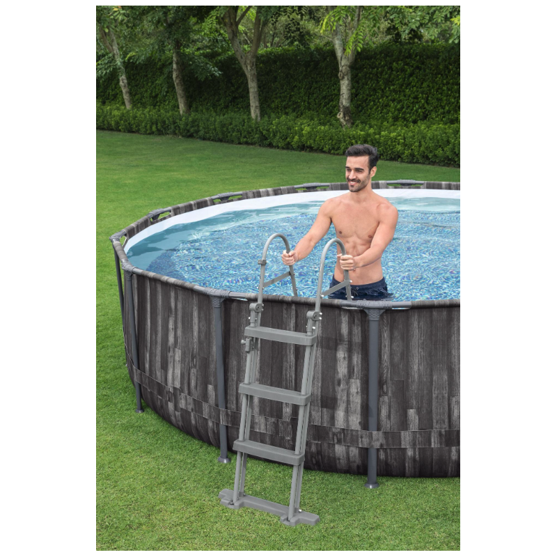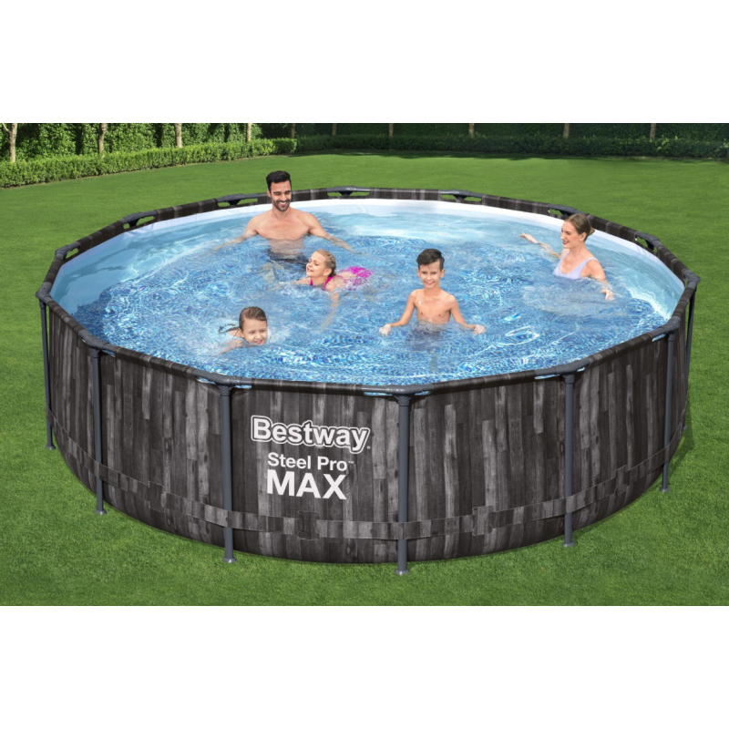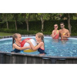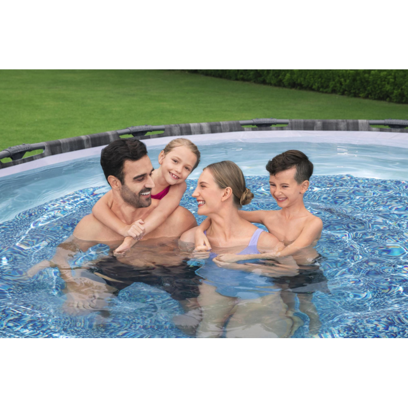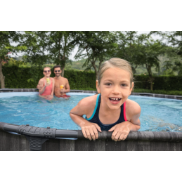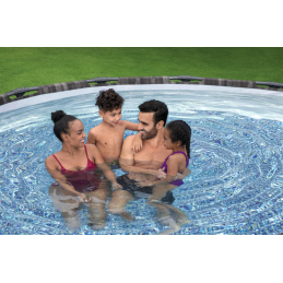 La piscina fuori terra Bestway Power Steel 5614Z Ø427x107 cm con finitura effetto rattan unisce estetica naturale e struttura rinforzata per garantire stabilità e durata nel tempo.