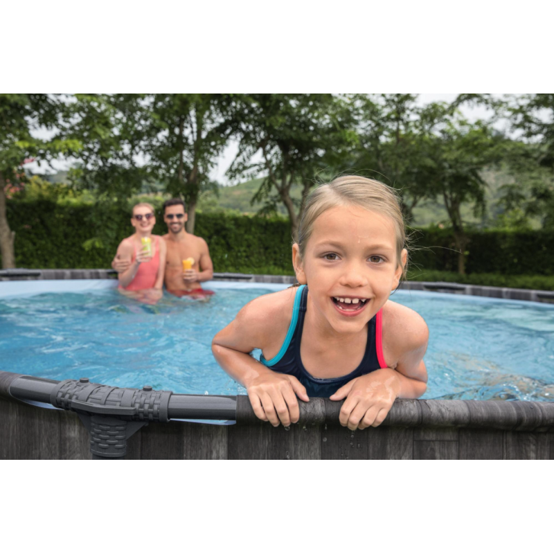 Completa di pompa filtro a cartuccia, scaletta di sicurezza e telo di copertura, rappresenta una soluzione ideale per famiglie che desiderano una piscina capiente, elegante e facile da installare in giardino.