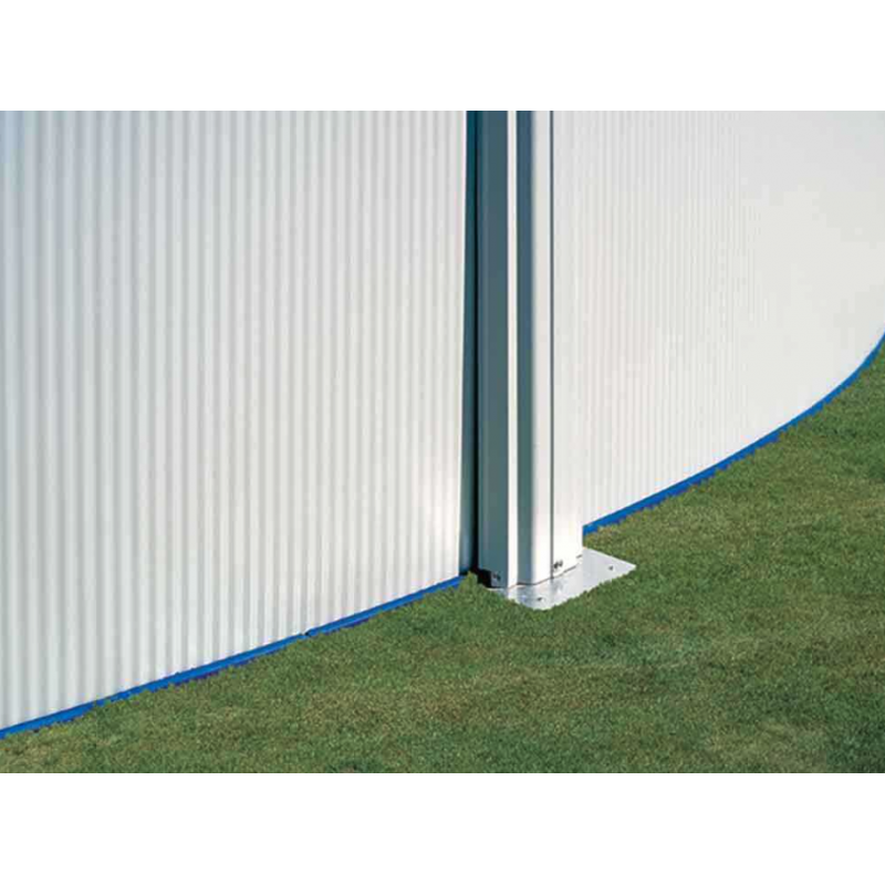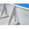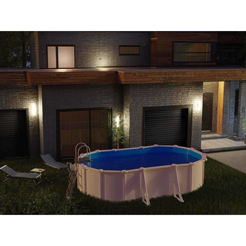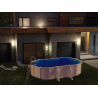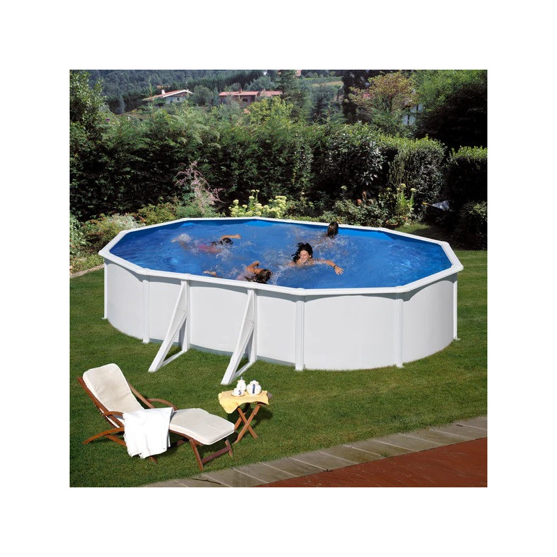 Piscina fuori terra ovale con struttura in acciaio galvanizzato progettata per offrire stabilità strutturale e lunga durata nel tempo in installazioni stagionali o semi-permanenti in giardino.