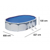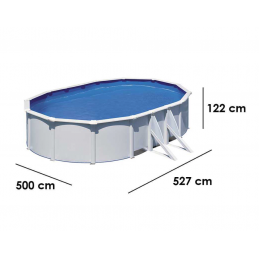 Tipologia: piscina fuori terra ovale in acciaioDimensioni: 500 x 300 x 132 cmStruttura: acciaio galvanizzato verniciato anticorrosioneFiltro: filtro a sabbia inclusoSkimmer: di superficie inclusoScaletta: sicurezza inclusaBasamento: inclusoInstallazione consigliata: su soletta in calcestruzzo livellata