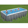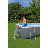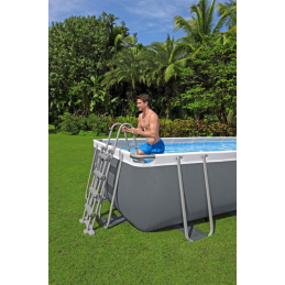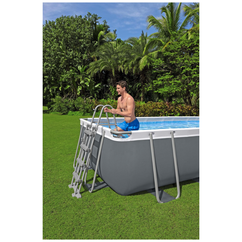 Piscina fuori terra rettangolare con struttura in acciaio anticorrosione progettata per offrire stabilità, ampia capacità e comfort durante l’utilizzo estivo in giardino o negli spazi esterni domestici.
