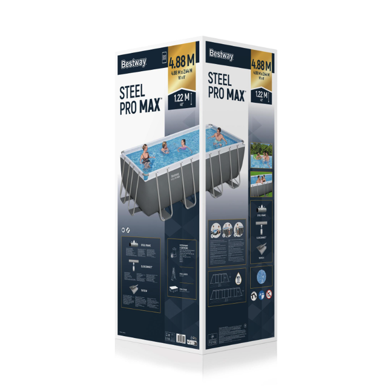Le dimensioni di 488x244 cm e l’altezza di 122 cm consentono un livello d’acqua profondo e confortevole, ideale per il relax e il divertimento di tutta la famiglia durante la stagione calda.