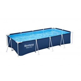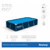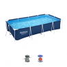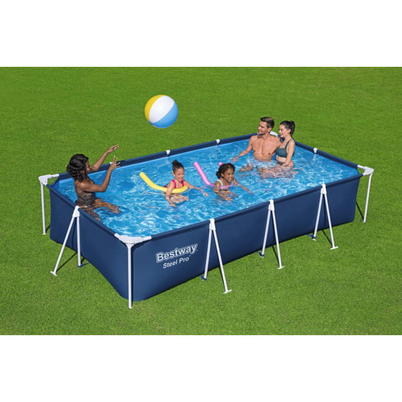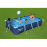 Piscina fuori terra rettangolare con struttura in acciaio progettata per offrire stabilità e praticità durante l’utilizzo estivo in giardino o negli spazi esterni domestici.