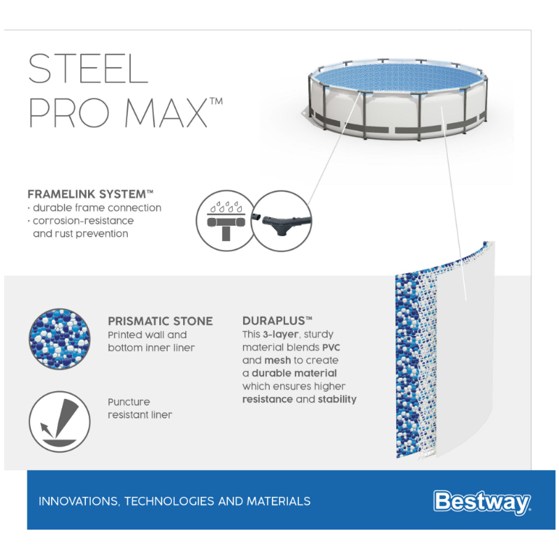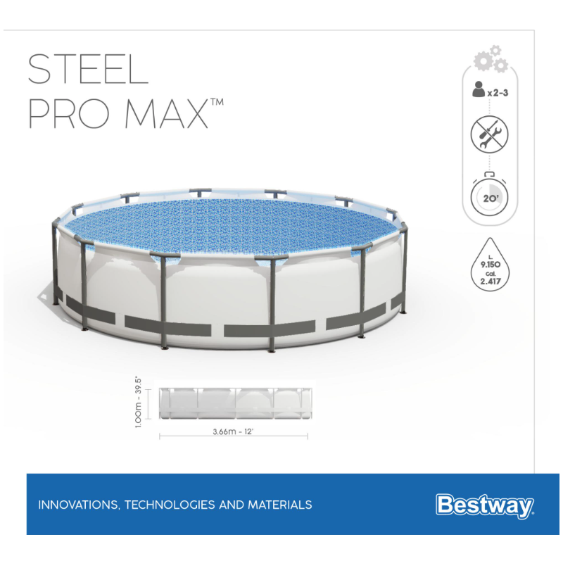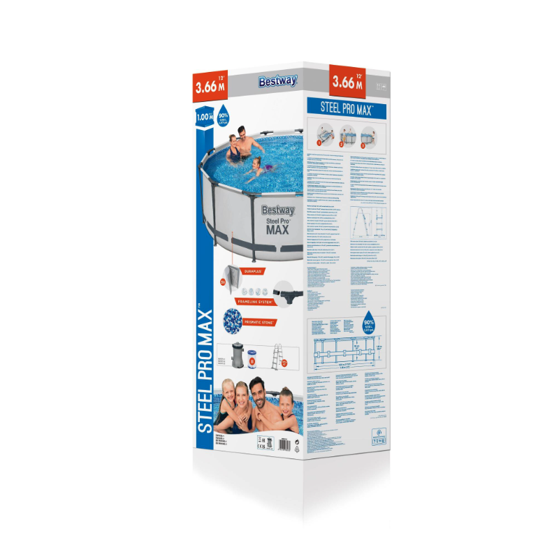 Con diametro di 366 cm e altezza di 100 cm consente un livello d’acqua più profondo rispetto ai modelli standard, risultando ideale per il relax e il divertimento di adulti e bambini.