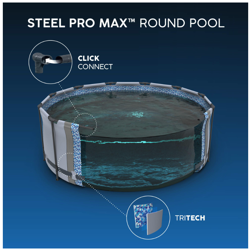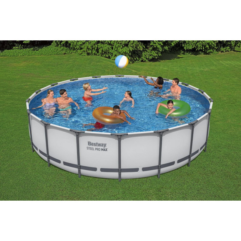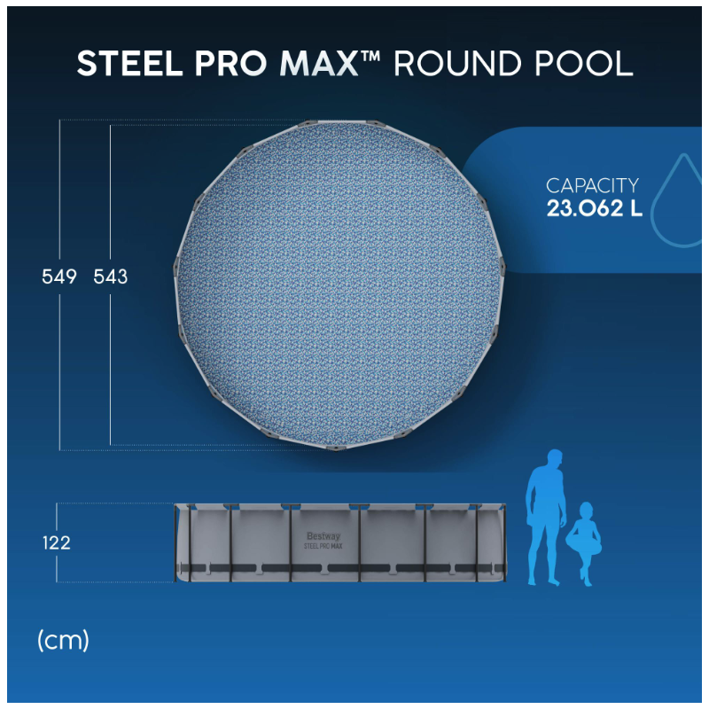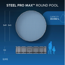 Con diametro di 549 cm e altezza di 122 cm consente un livello d’acqua profondo e confortevole, ideale per il relax e il divertimento di più persone contemporaneamente.