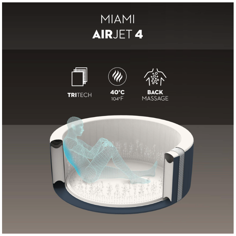 Il sistema AirJet con 120 getti d’aria distribuiti lungo il perimetro interno assicura un massaggio uniforme e rilassante ideale per momenti di benessere quotidiano fino a 4 persone.
