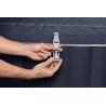 La dotazione include cartuccia filtrante, telo di copertura e dosatore ChemConnect per la distribuzione uniforme del cloro e il mantenimento della qualità dell’acqua.
