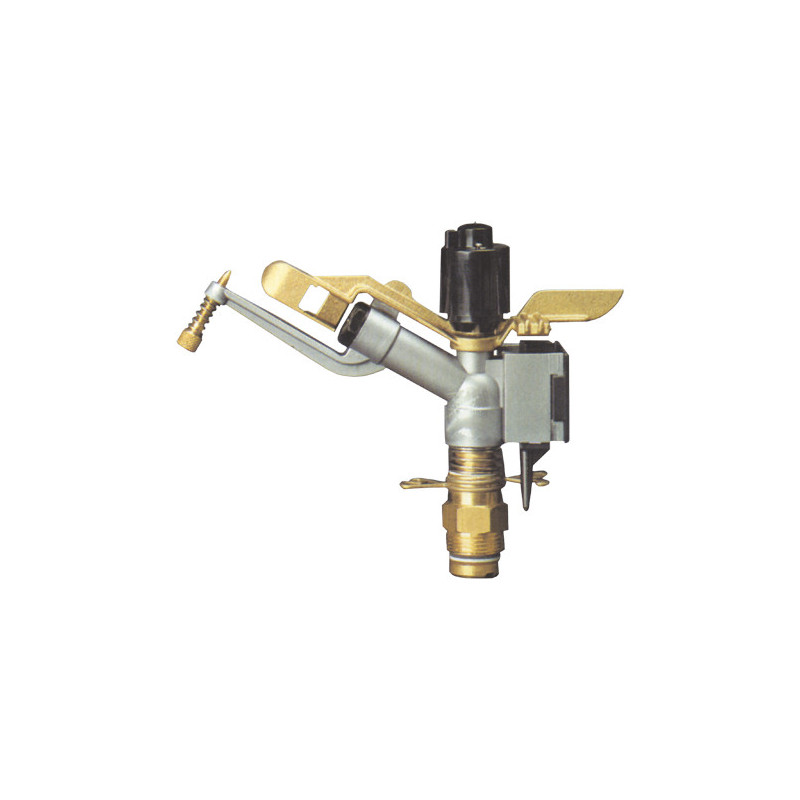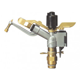 Irrigatore a settore regolabile con attacco maschio da 3/4" e ugelli intercambiabili da 4, 5 e 6 mm.