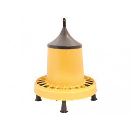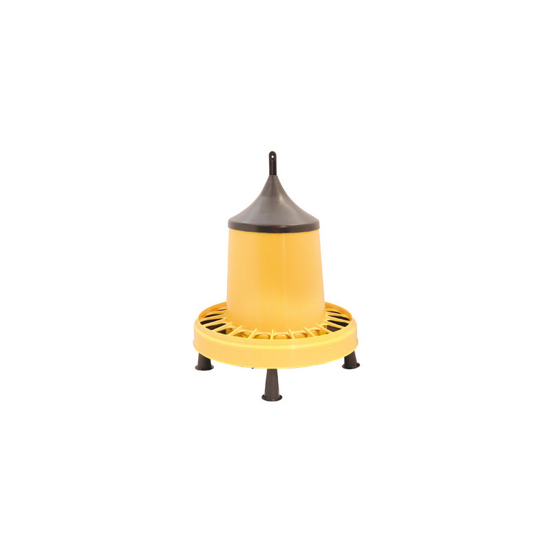 La mangiatoia a tramoggia da 15 kg è realizzata in plastica idonea all'uso alimentare, con un diametro di 43 cm e un'altezza di 43 cm.