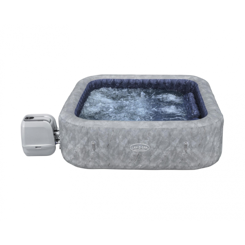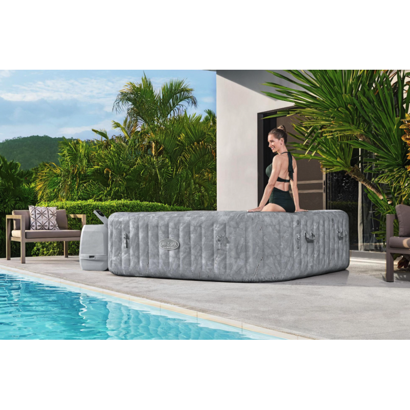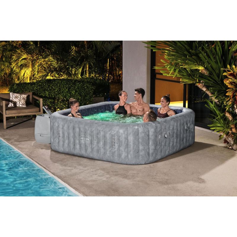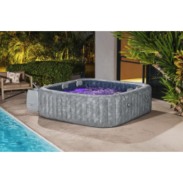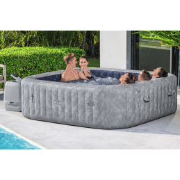 Spa gonfiabile idromassaggio quadrata progettata per offrire un’esperienza di benessere avanzata in giardino o terrazzo grazie alla struttura rinforzata in materiale EnergySense con tecnologia MaxHold che migliora stabilità e resistenza durante l’utilizzo.