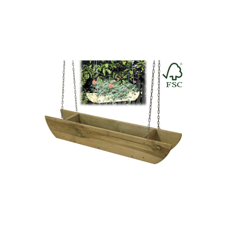 Fioriera sospesa in legno 90 × 18 × 14 cm, realizzata in abete rosso e pino verde impregnati.