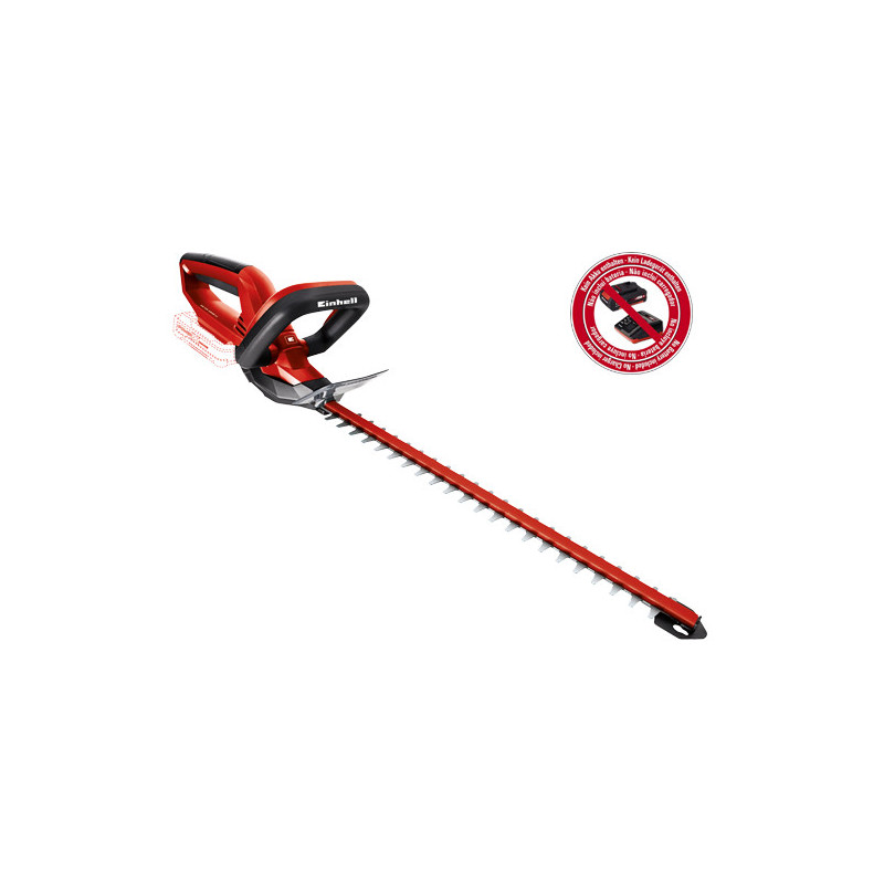 Tagliasiepi cordless 18 V con lama 46 cm in acciaio laser-cut e diamantato.