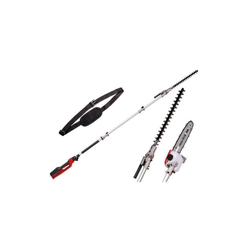 Tagliasiepi telescopico da 900 W con funzione motosega – lama 46 cm per siepi, barra 20 cm Oregon per rami spessi.