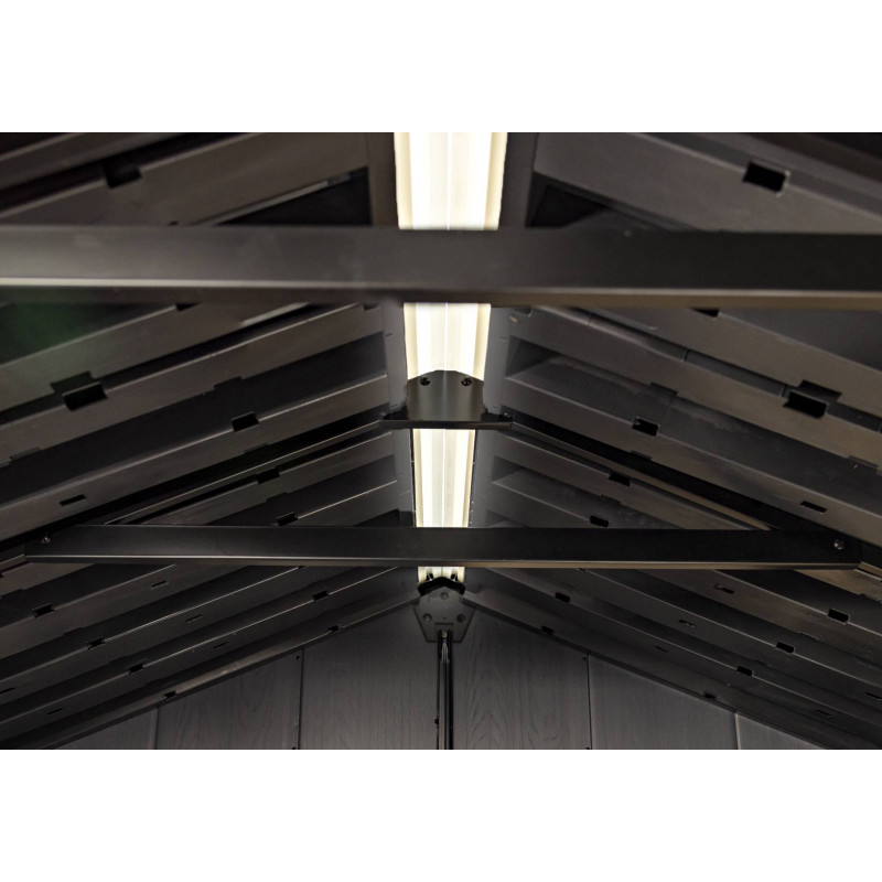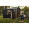 Facile da montare e dotata di soffitto alto per muoversi agevolmente, rappresenta una soluzione ideale per organizzare mobili da giardino, attrezzi e forniture in modo ordinato e sicuro.