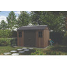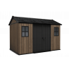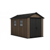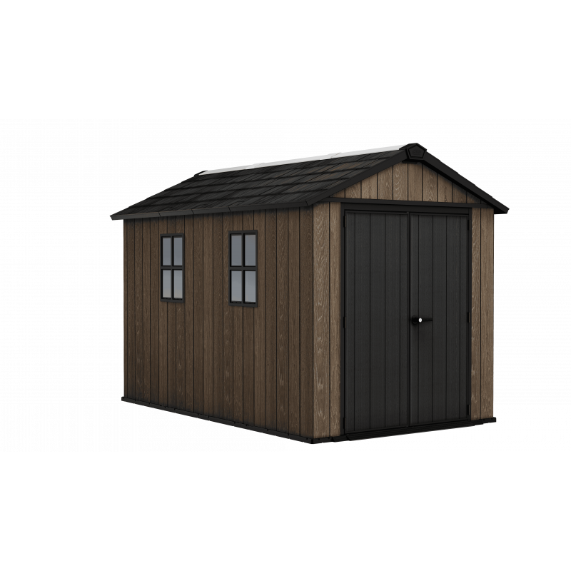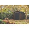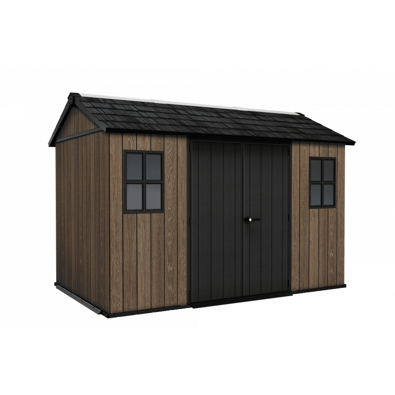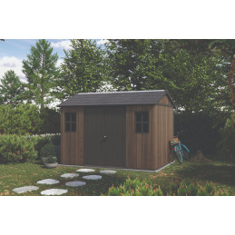 Pensata per chi necessita di massima capienza e robustezza, questa casetta in resina effetto legno con finitura Signature Walnut offre uno spazio ampio e organizzato per il deposito di arredi e attrezzature da giardino.