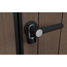 La porta a due ante consente un accesso ampio e pratico, mentre la chiusura lucchettabile aumenta la sicurezza della struttura.