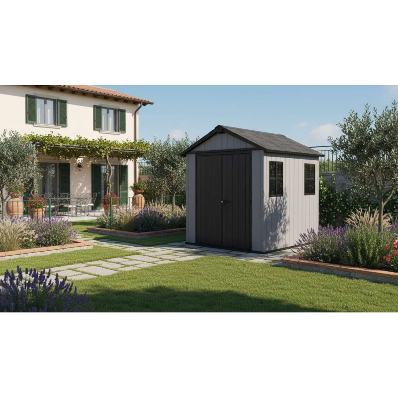 Ideale per chi necessita di maggiore capienza e solidità strutturale, questa casetta da giardino in resina EVOTECH+ abbina l’aspetto naturale del legno alla resistenza e alla durabilità della resina, offrendo una soluzione affidabile per l’organizzazione degli spazi esterni.