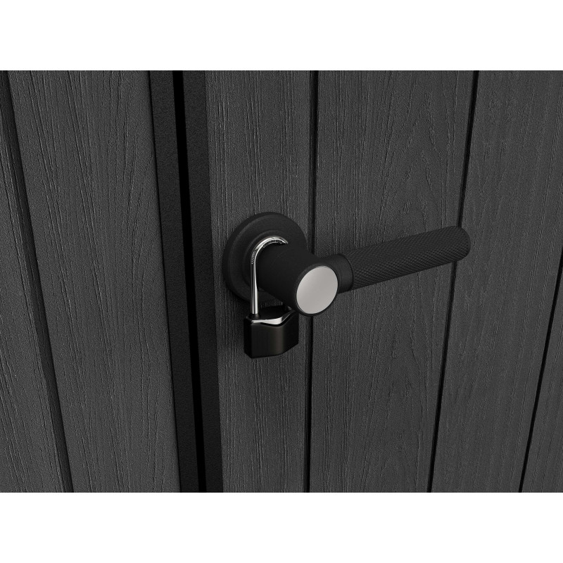 La porta a due ante consente un accesso ampio e pratico, mentre la chiusura lucchettabile offre maggiore sicurezza per il contenuto.