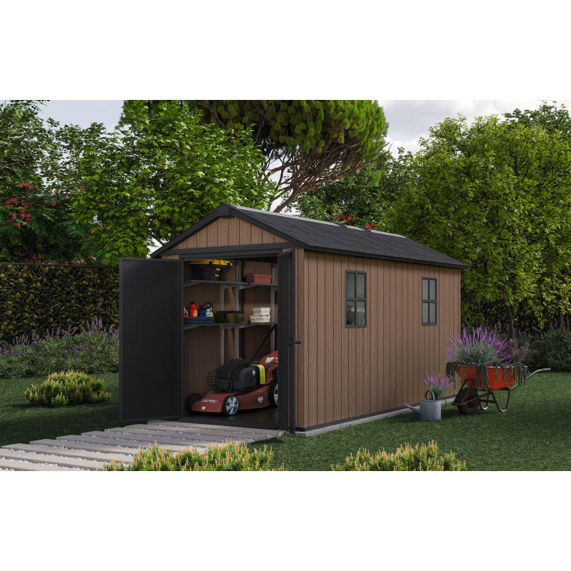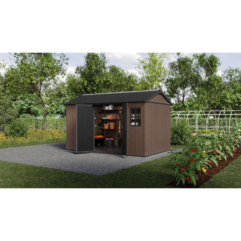 Pensata per chi necessita di ampia capacità di stoccaggio e massima robustezza, questa casetta da giardino in resina EVOTECH+ combina l’estetica naturale del legno con la durabilità della resina, offrendo una soluzione affidabile e funzionale per grandi spazi esterni.